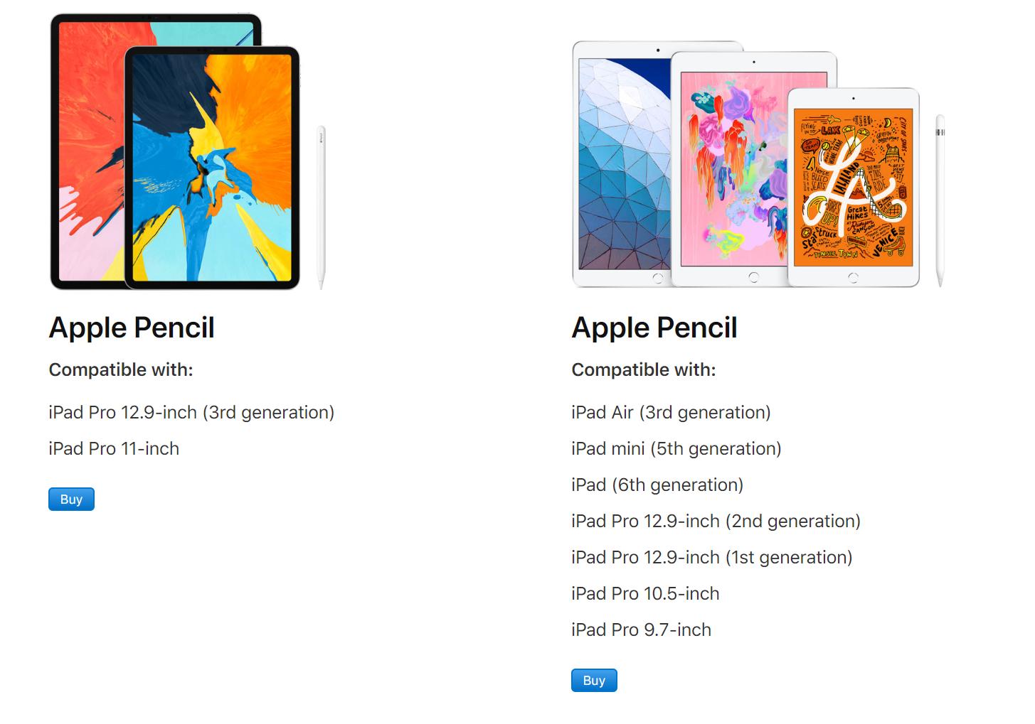 They measure and collect location pressure and orientation tilt data which is then combined together to produce the pen output. IPad 8th generation iPad mini 5th generation iPad 7th generation iPad 6th generation iPad Air 3rd generation iPad Pro 129-inch 1st or 2nd generation iPad Pro 105-inch. Apple Pencil 1st generation You can use Apple Pencil 1st generation with these iPad models.